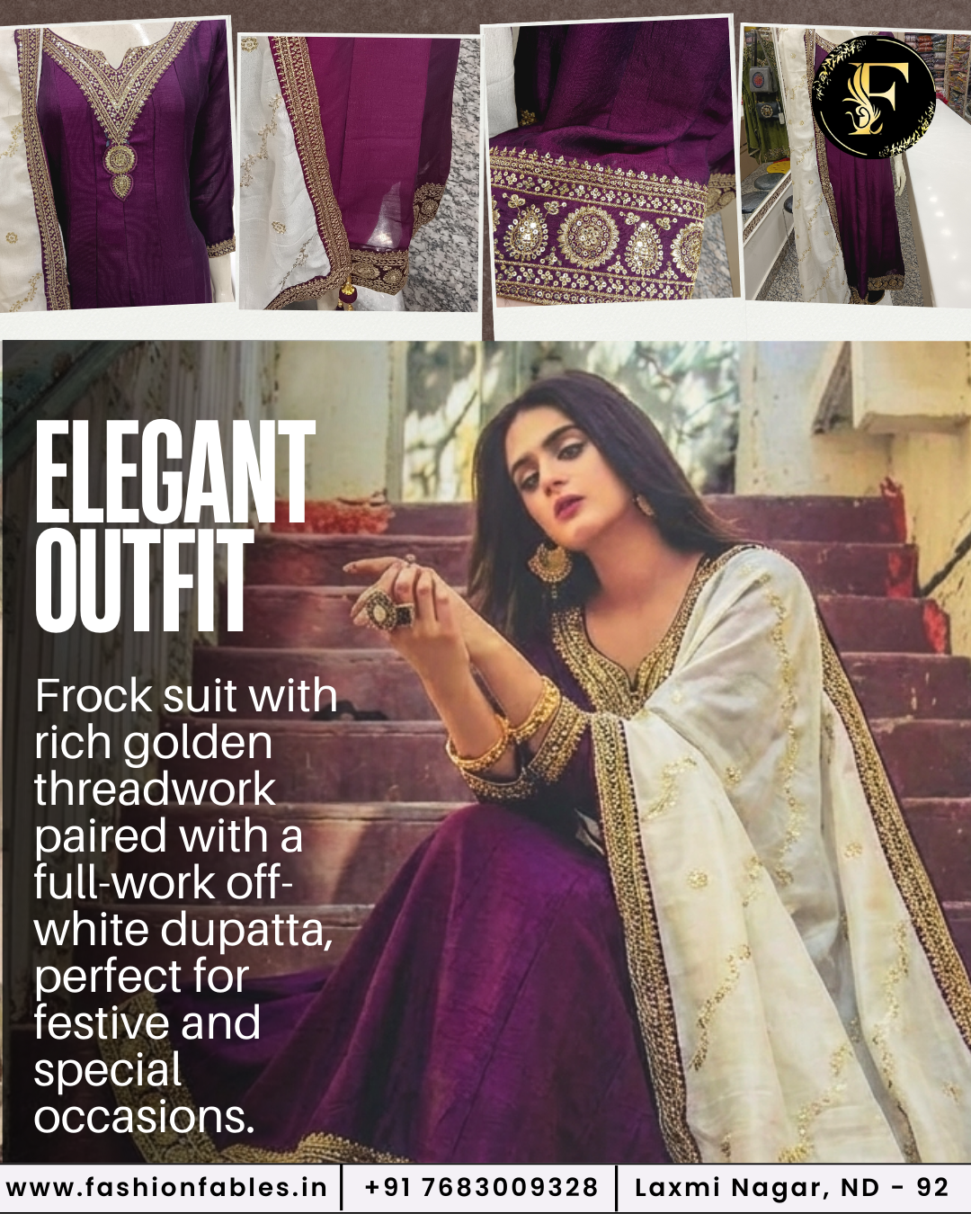 elegant frock suit with rich golden thread embroidery