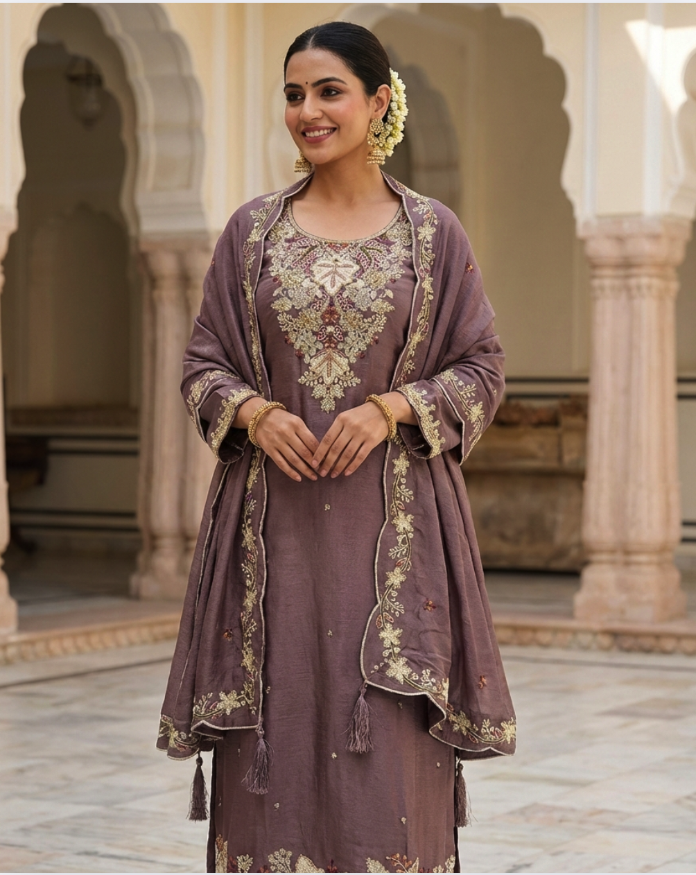 With a lightweight yet premium drape and a comfortable fit, this outfit lets you enjoy long celebrations effortlessly while looking stylish and confident. A perfect choice for those who love trending designs, elegant silhouettes, and premium ethnic wear in one timeless piece.