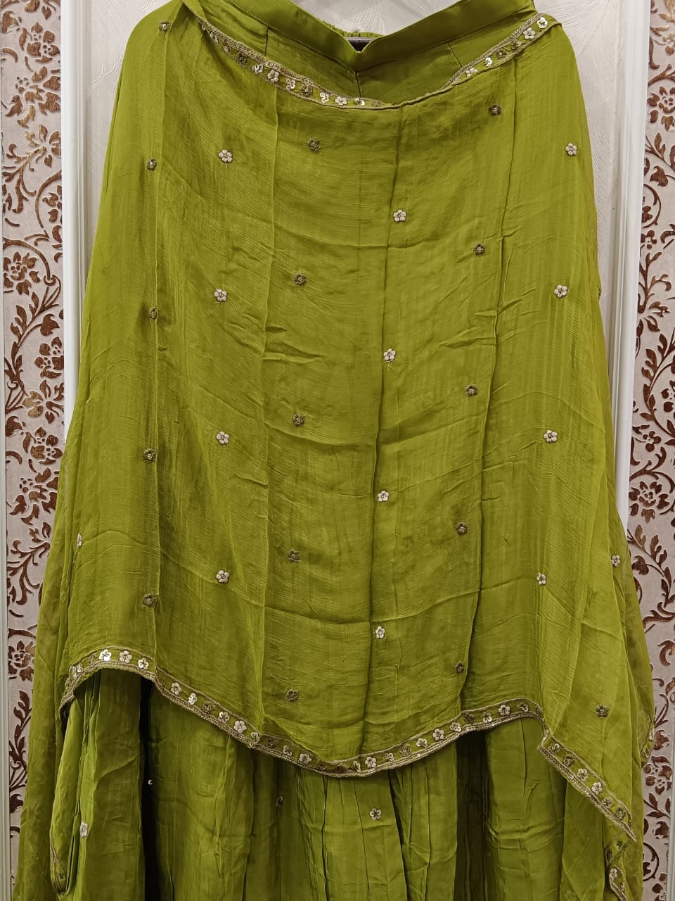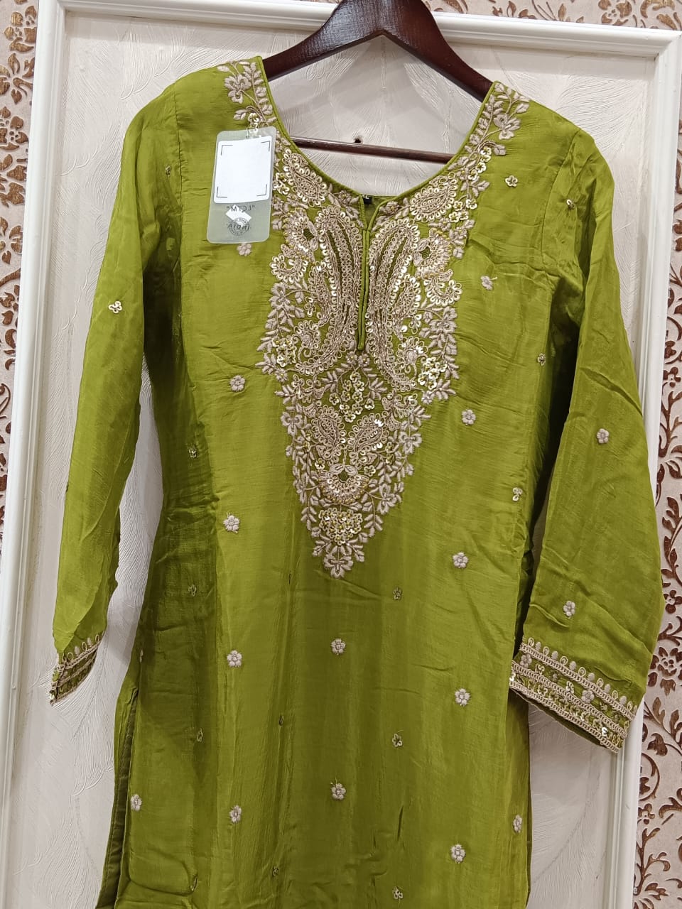 Add a touch of grace to your wardrobe with our Pure Chinon Embroidered Suit. Made from soft, flowing pure chinon fabric, this suit features intricate embroidery that enhances its charm. Lightweight and comfortable, it’s ideal for festivals, family gatherings, or special events. The soothing color adds a feminine and elegant vibe, making it a must-have for your ethnic collection. Pair it with minimal jewelry for a chic, sophisticated look.