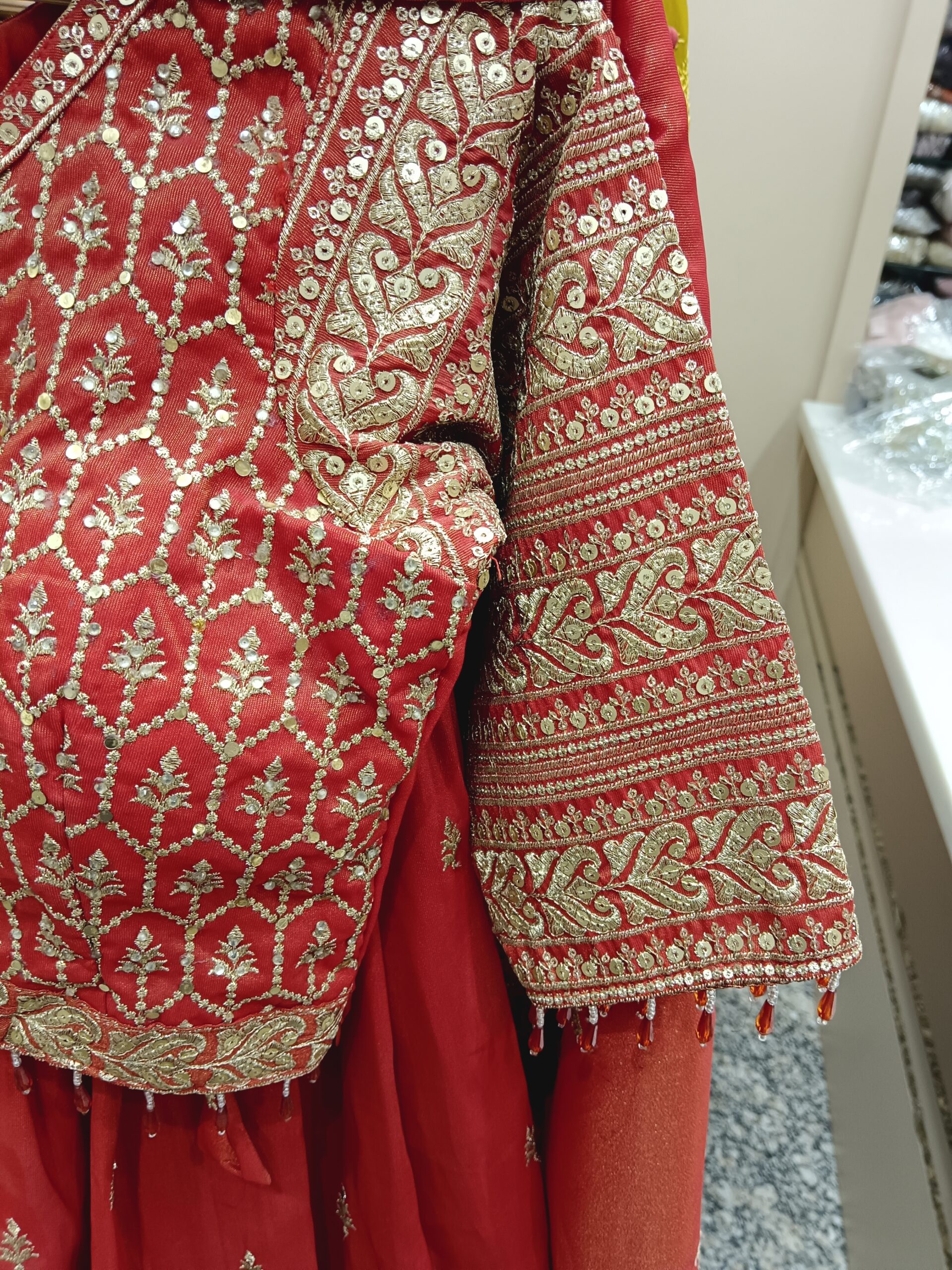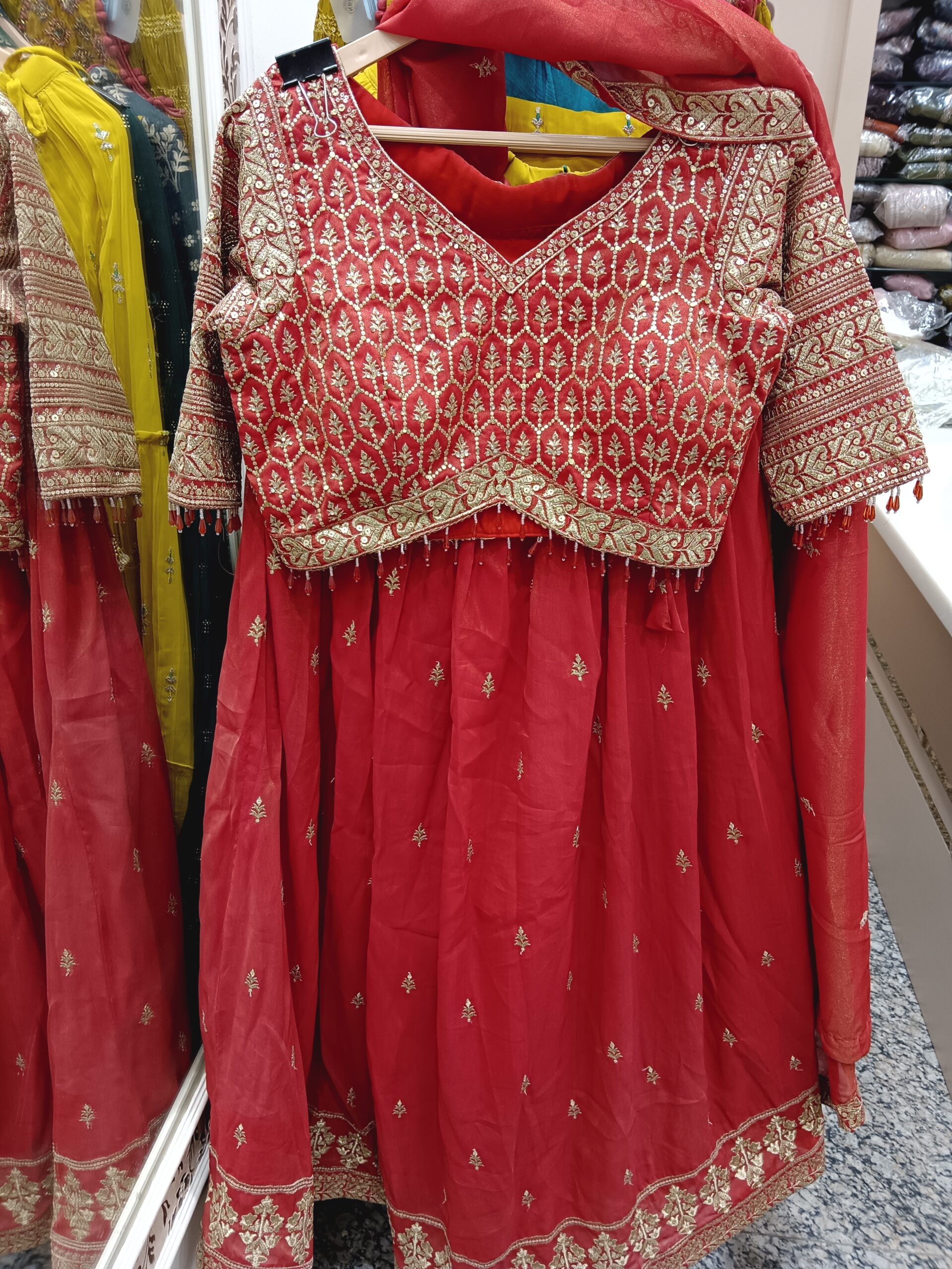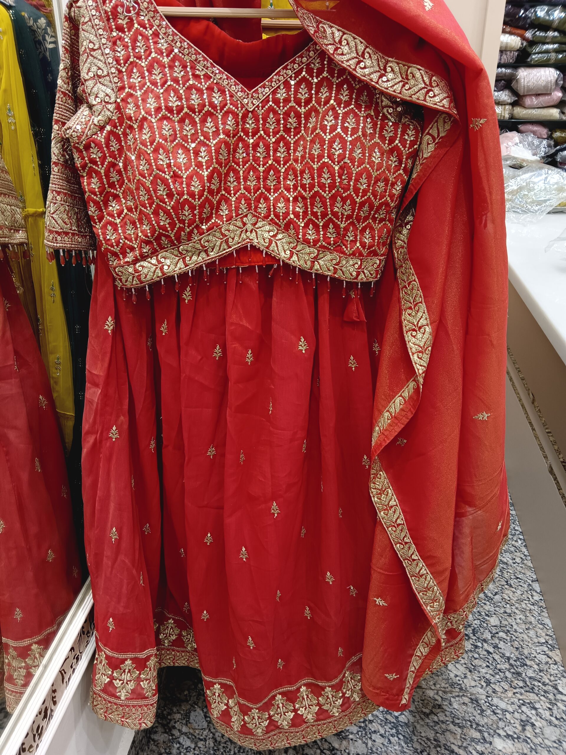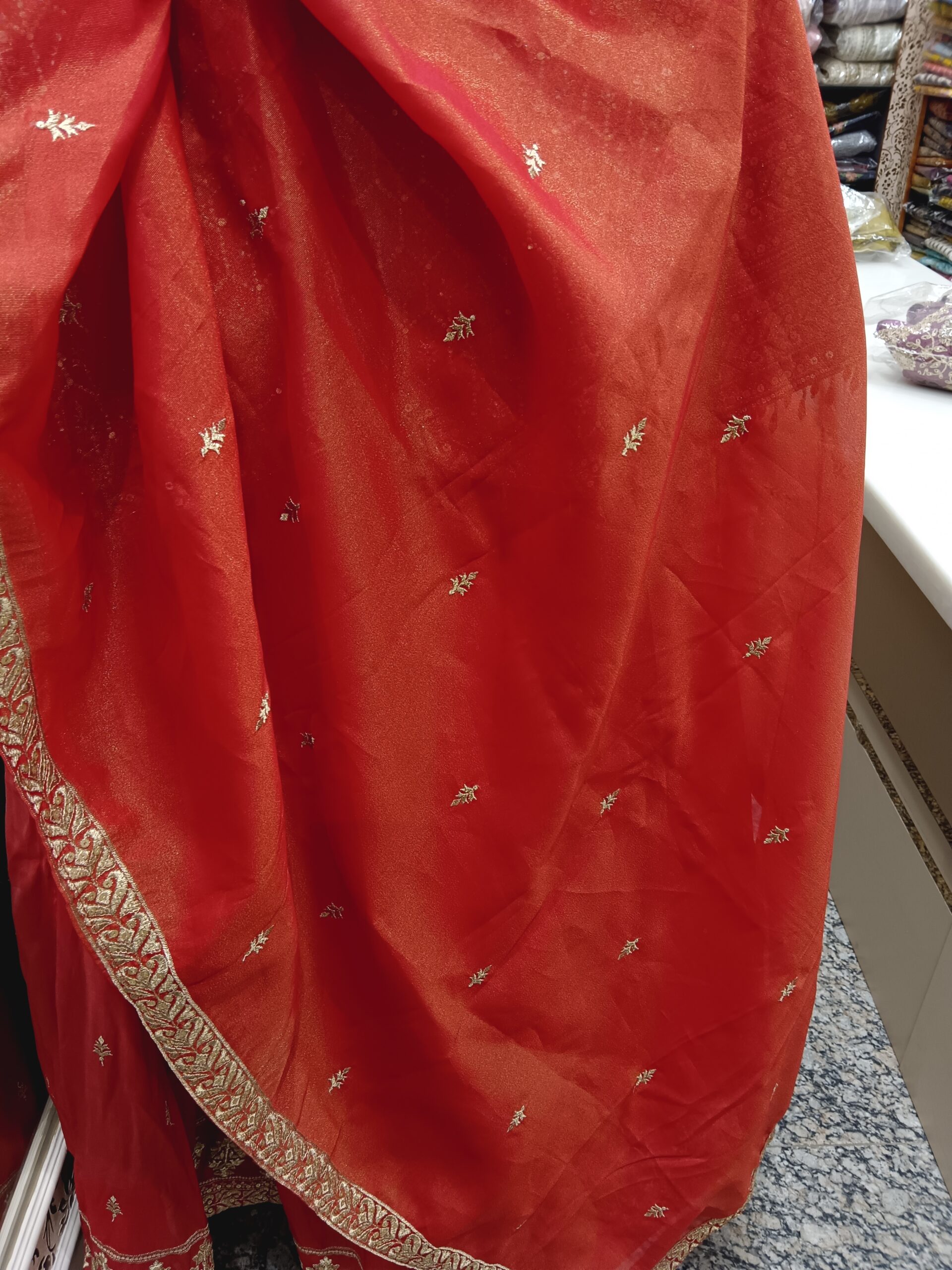Be the first to review “Red Glass Tissue Lehenga with Pure Golden Work”