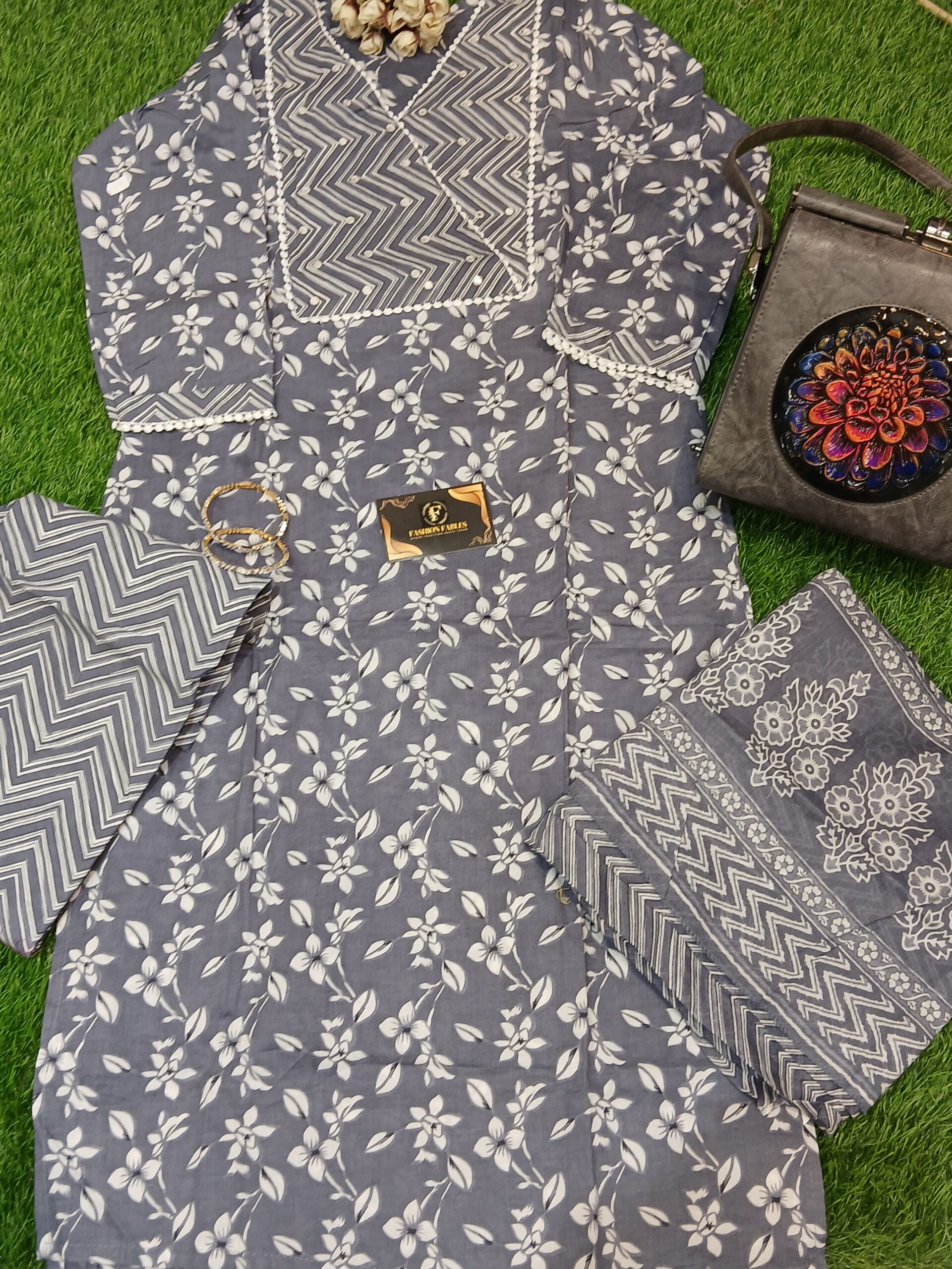 Stay chic and comfortable in this elegant grey straight pant suit—crafted for effortless daily style with subtle sophistication. Priced at ₹1390.